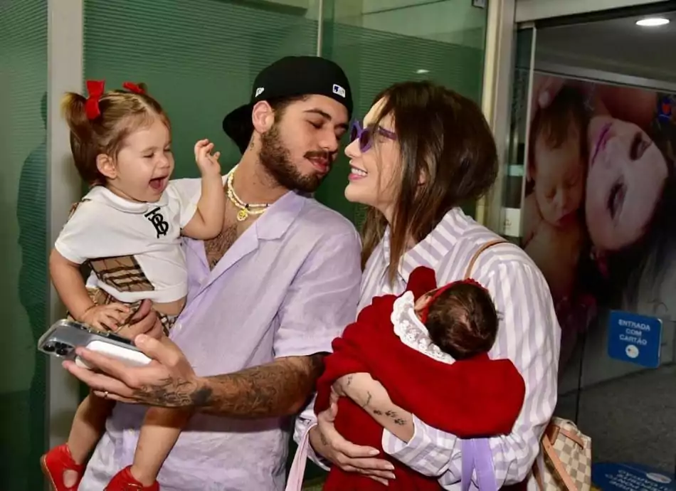 Virgínia e Zé Felipe deixam maternidade após nascimento de Maria Flor