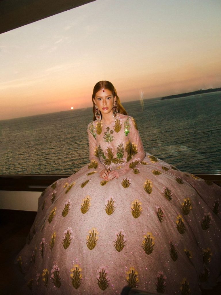 Acompanhada pelo direto criativo Giambattista Valli, a atriz e empresária foi uma das convidadas