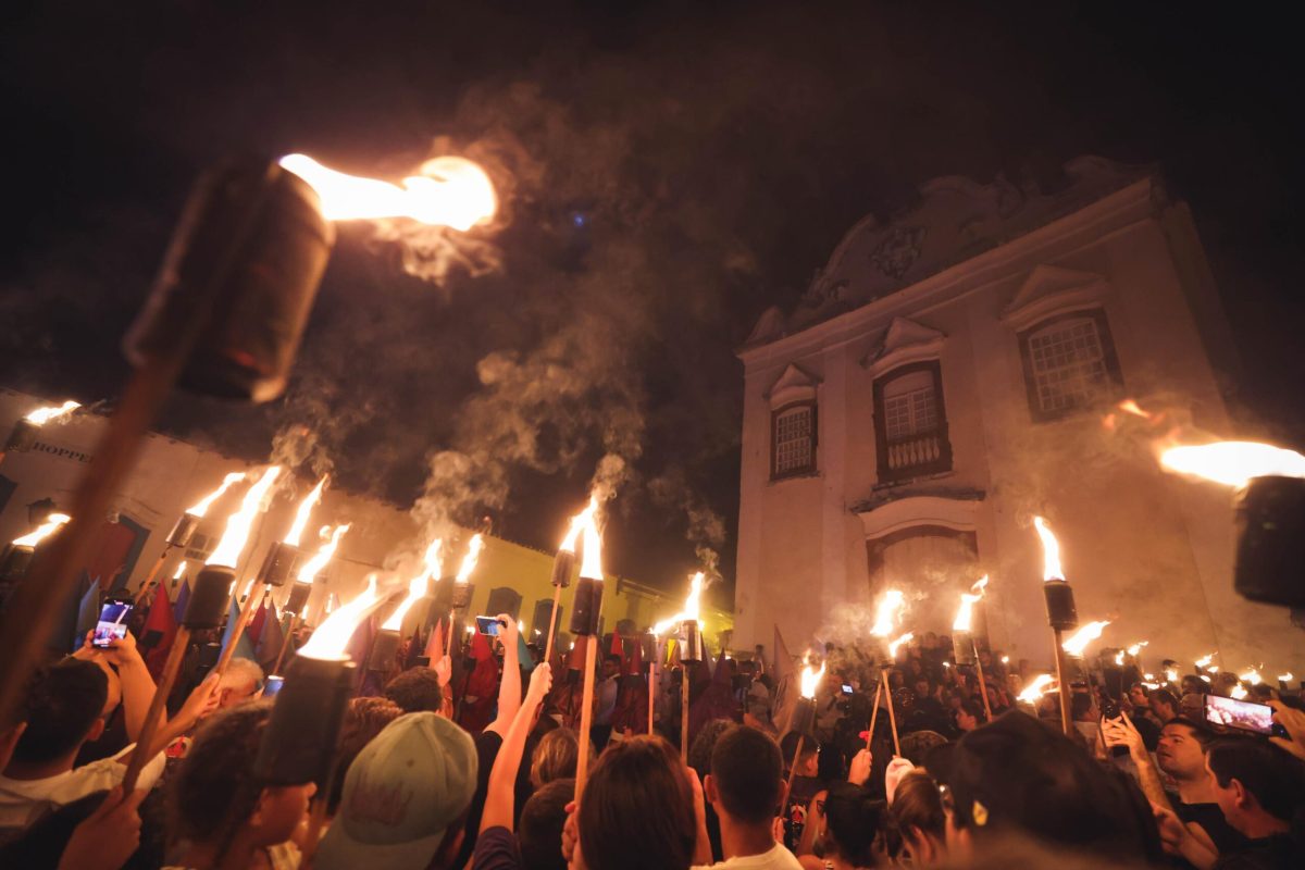 Ao apagar das luzes das ruas da primeira capital de Goiás, o silêncio e a escuridão deram lugar às batidas das fanfarras e às chamas das tochas dos farricocos. O início da Procissão do Fogaréu, que completa 280 anos de história, iluminou a histórica cidade de Goiás na madrugada desta quinta-feira (16/4), reunindo fé e tradição. O governador Ronaldo Caiado e a coordenadora do Goiás Social, primeira-dama Gracinha Caiado, acompanharam de perto a celebração cristã, assim como milhares de devotos, turistas e moradores do município.