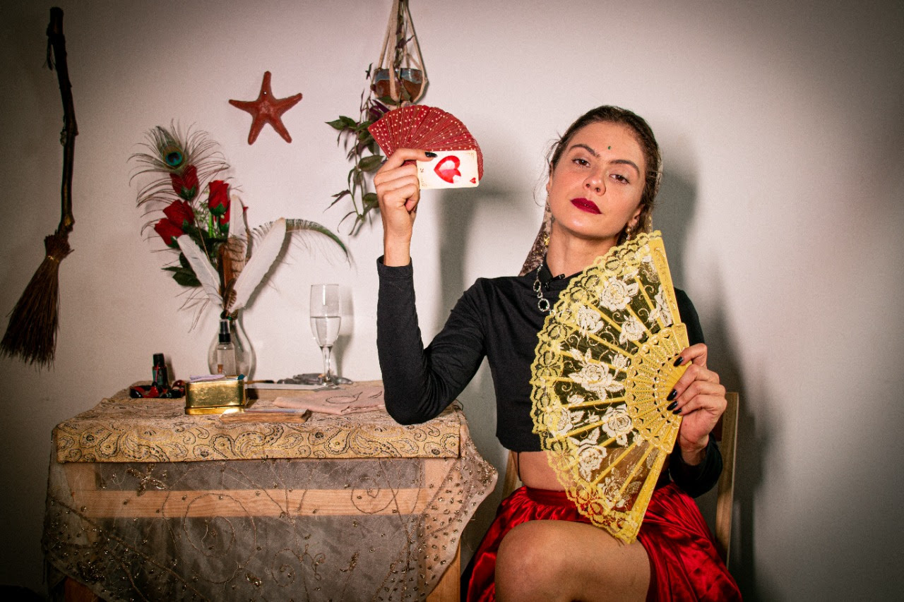Todas as imagens trazem um simbolismo de luz e sombra, o que ela conta que as pessoas passarão por experiências distintas. “Passamos por cartas diferentes ao longo de nossas vidas, então, são experiências que vivemos no dia a dia. Eu contarei esses arcanos divididos entre jornadas interpretando uma cigana, como se fosse um “alter ego”. A apresentação será composta por vários figurinos e acessórios”, lembra ela. Essa será a primeira apresentação da peça.