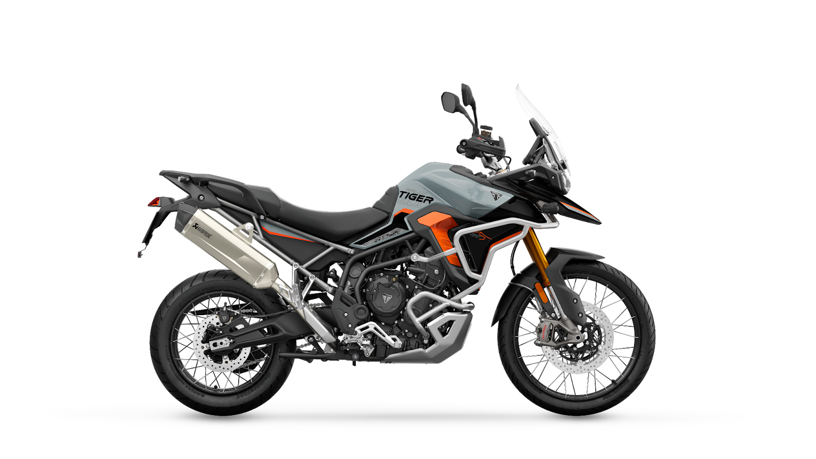 Na Tiger 900, pela primeira vez em um modelo adventure da marca, as versões Alpine e Desert passam a contar com escapamento Akrapovič como item de série, ampliando o apelo esportivo. A Alpine Edition, baseada na versão GT Pro e voltada ao uso predominante em estrada, incorpora barras de proteção do motor. Já a Desert Edition, derivada da Rally Pro, recebe barras de proteção do tanque de combustível, ampliando a resistência em percursos fora de estrada. Ambas oferecem, como acessórios, opções de banco aquecido ou banco rebaixado.
